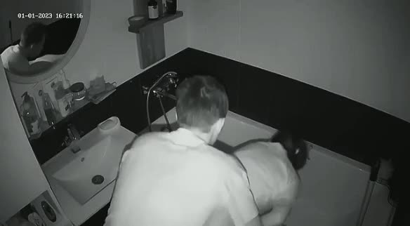 Парень загнул в ванну девчонку и оттрахал её рачком, кончил правда тоже в ванну.)