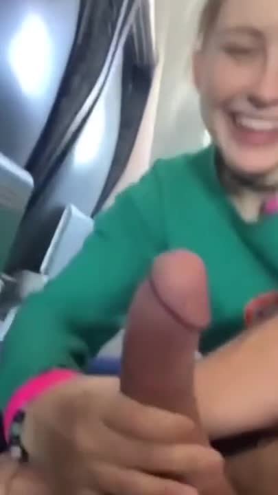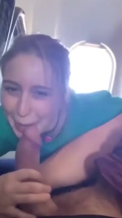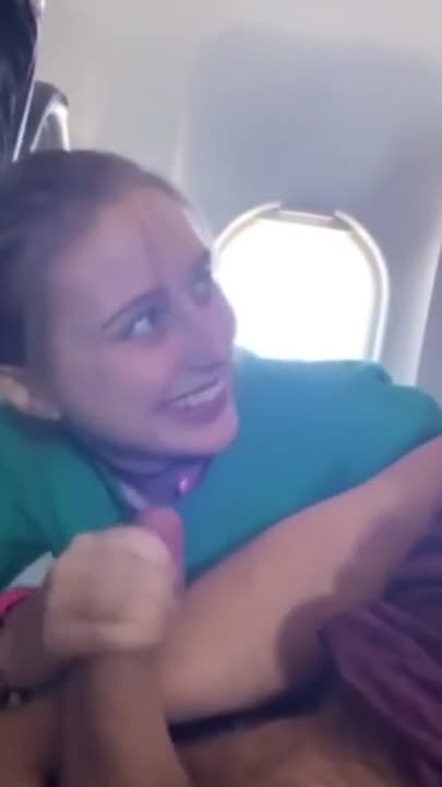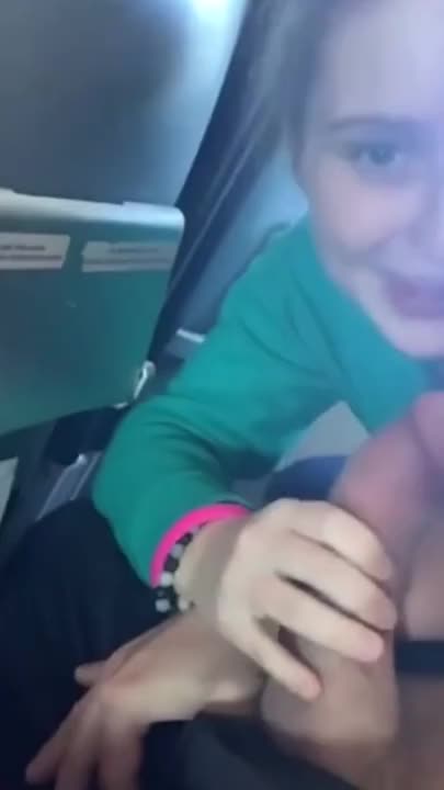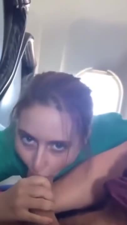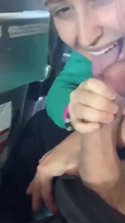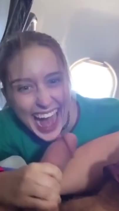 Девушка с радостным лицом делает минет своему парню в самолёте.