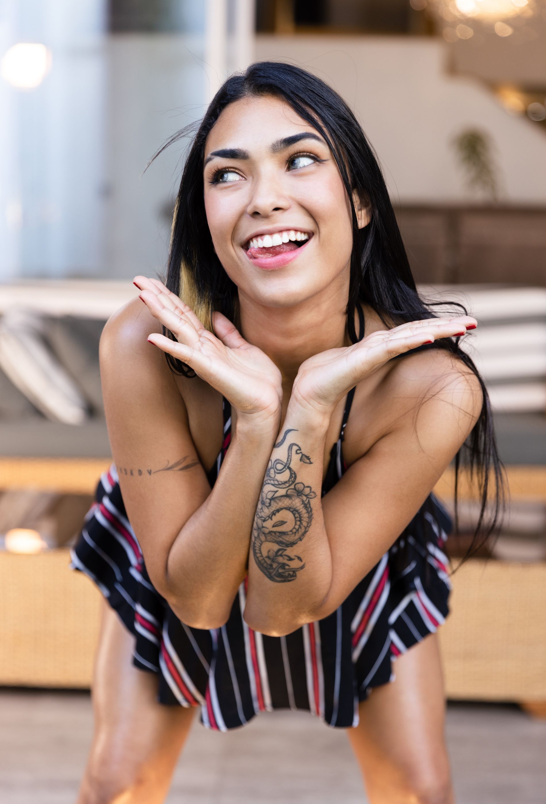 Девушка по имени Карен присела над фонариком в земле показав свои прелести