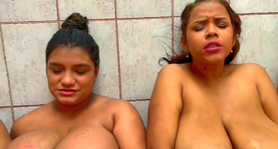 Три пухленьких подружки расположились в душе и натирают свои писюхи.