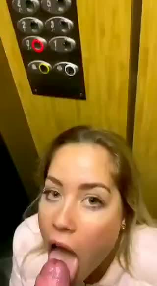 Парочка едет в лифте и девака сосёт своему парню его толстый членик.