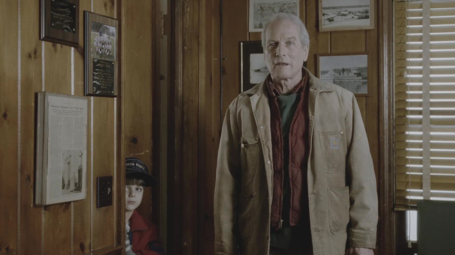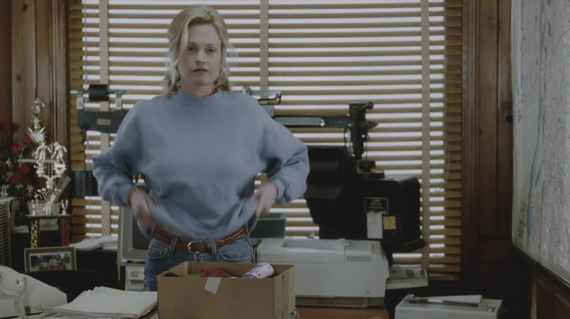 Фильм "Без дураков". Дедушка с внуком заходят на работу к женщине и она ловя момент, пока внук вышел, показывает свои шикарные сиськи...