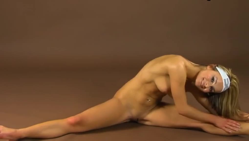 Девушка не только занимается гимнастикой но и как можно шире раскрывает свою киску для обозрения