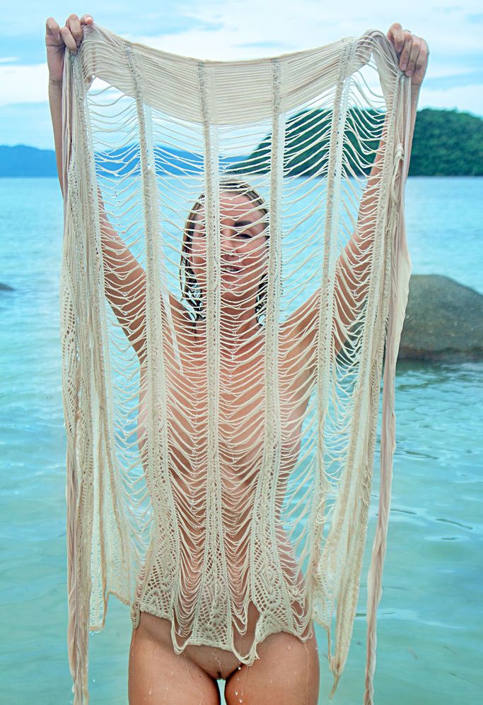 Виктория обнажается на пляже и щеголяет своими раскошными формами