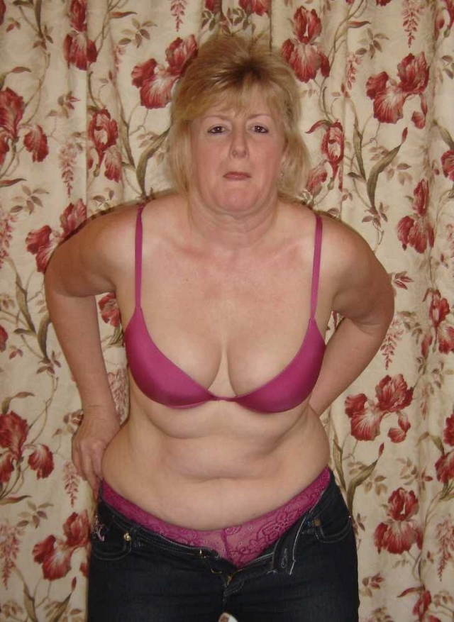 Зрелая женщина из Англии снимает одежду, демонстрируя стройное тело с широкими бедрами