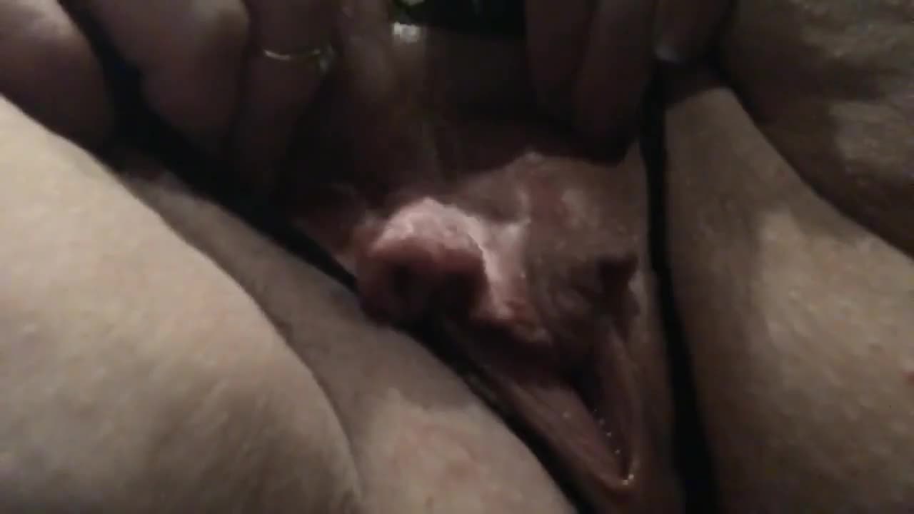 Очень толстая женщина в возрасте мастурбирует свою губастую бритую киску и снимает на видео крупным планом!
