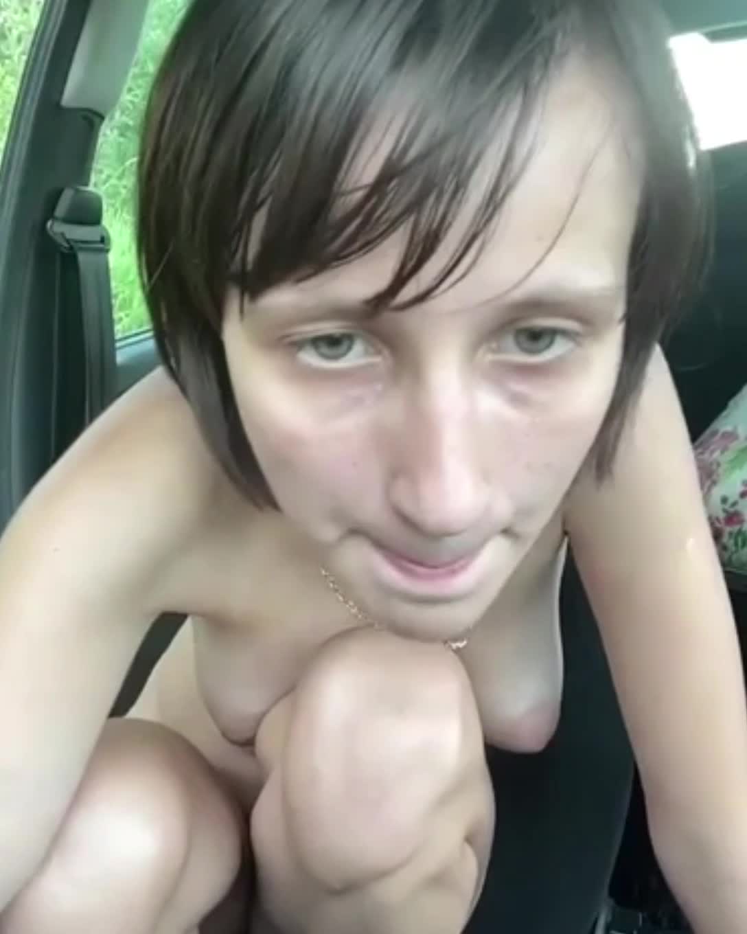 Девушка дрочит в авто свою щелку бутылкой и снимает на камеру
