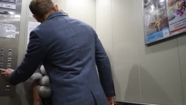 паренек не выдержал соблазна и трахнул симпатичную дивчину во время поездки в лифте.