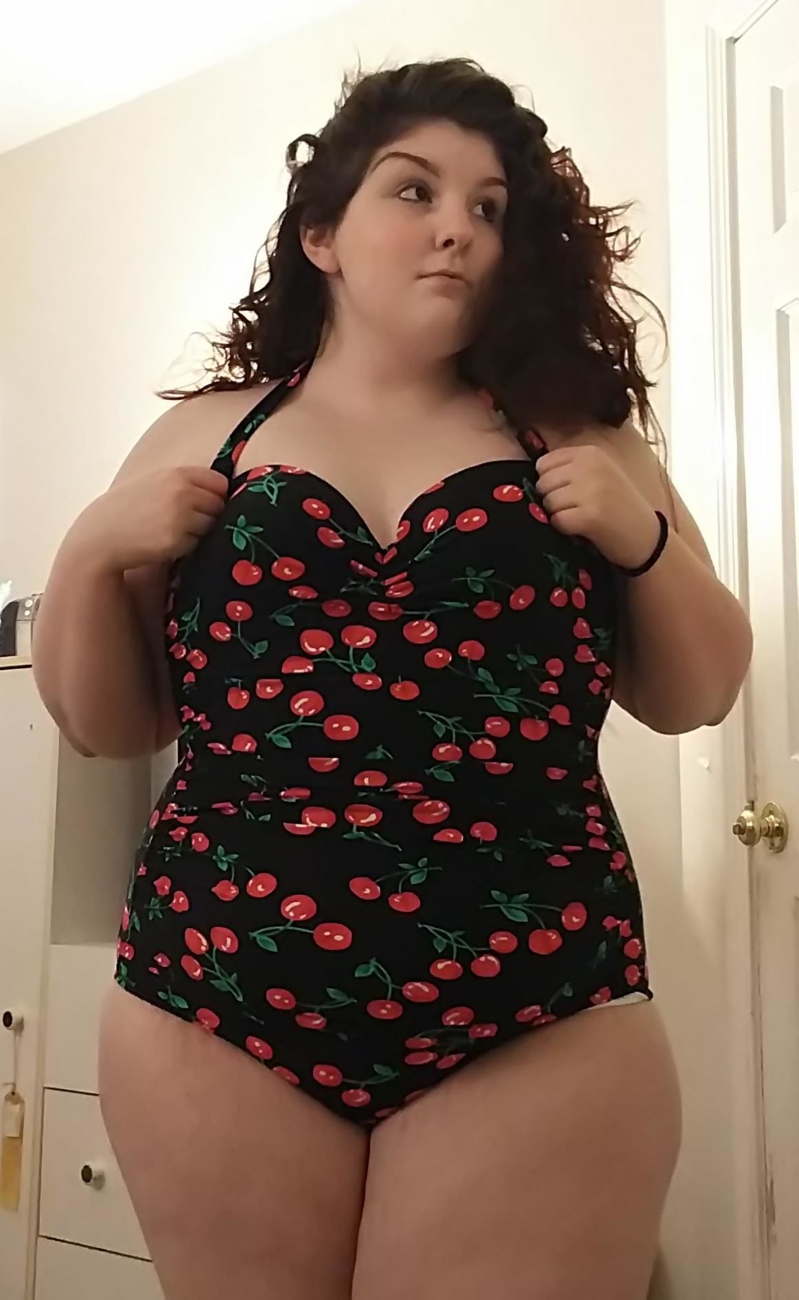 Красивая и молодая толстушка, показывает свои дырочки и фигуру