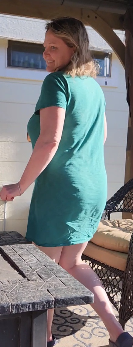 Решила покормить кисок пока в гостях был сосед. Немного стеснялась, но вышла в одном платишке, ведь киски голодные