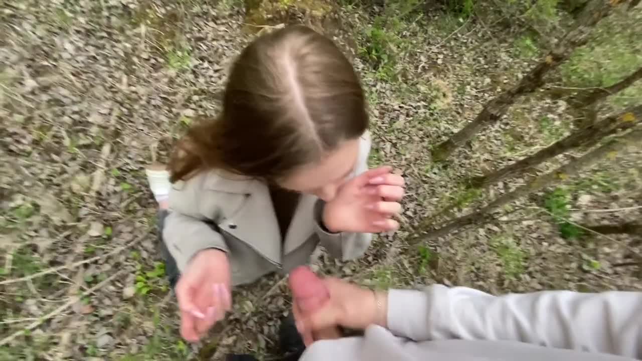 Какая девка красивая! И сосет в лесочке на камеру классно