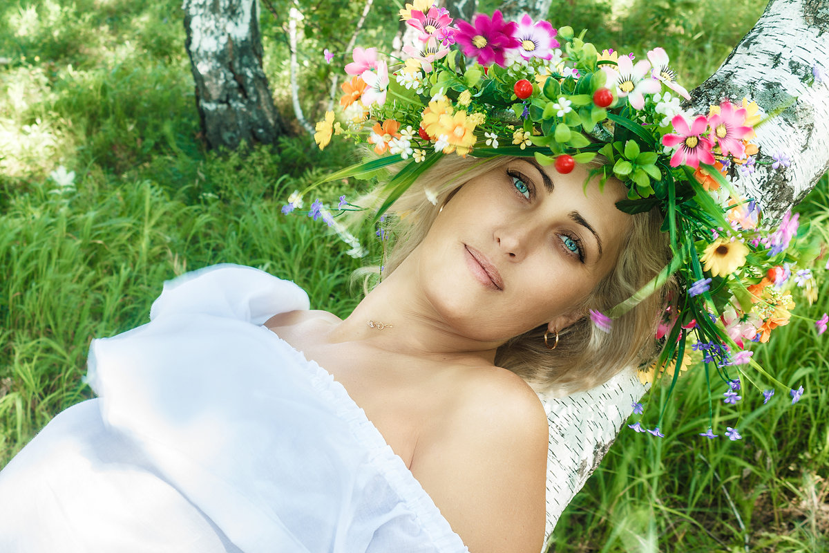 Белобрысая красотка приняла участие в эротической сессии на поляне