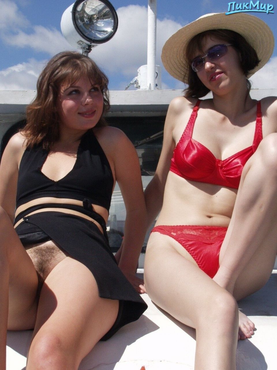 Девочки шалят на яхте выставляют свои прелести