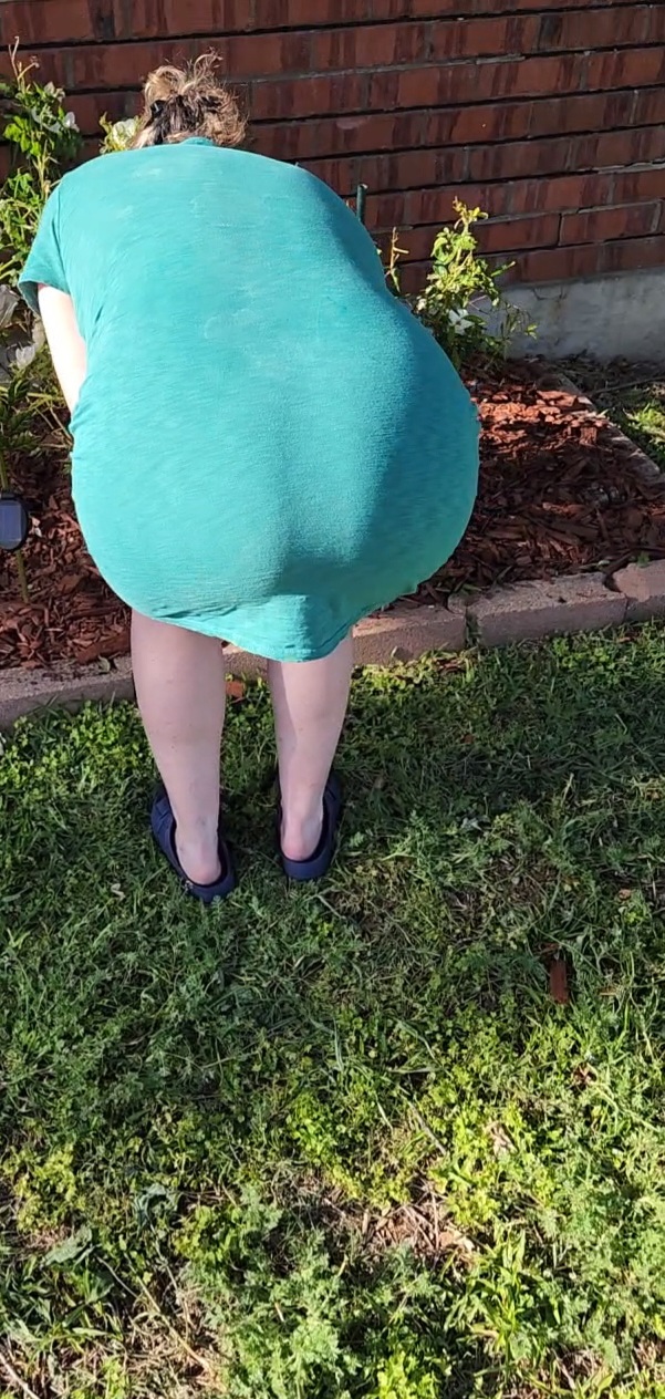 Пришел сосед и милфа решила показать ему свой сад в одном платишке, решила прополоть грядку и пришлось немного нагнуться...а под платишком небыло трусиков