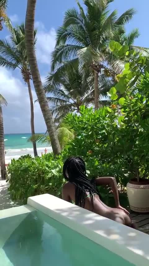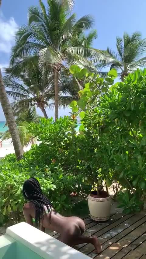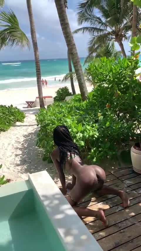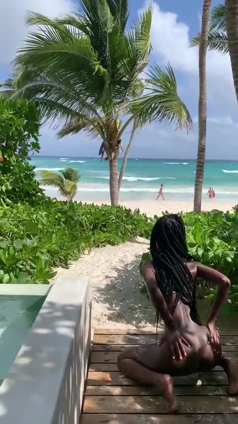 Девушка не стесняясь других людей на пляже показывает свою прекрасную попку
