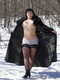 Красивая брюнетка Елена голая в зимнем пейзаже