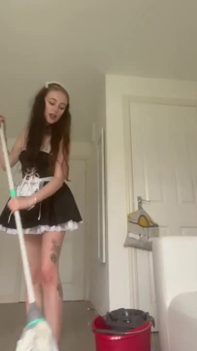 Девушка убиралась в комнате в интересном платье а потом и подрочила