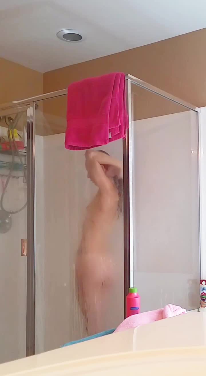 Девка поставила камеру, зашла в душ и показала как она умеет удовлетворять себя струями воды! Заодно и помылась.