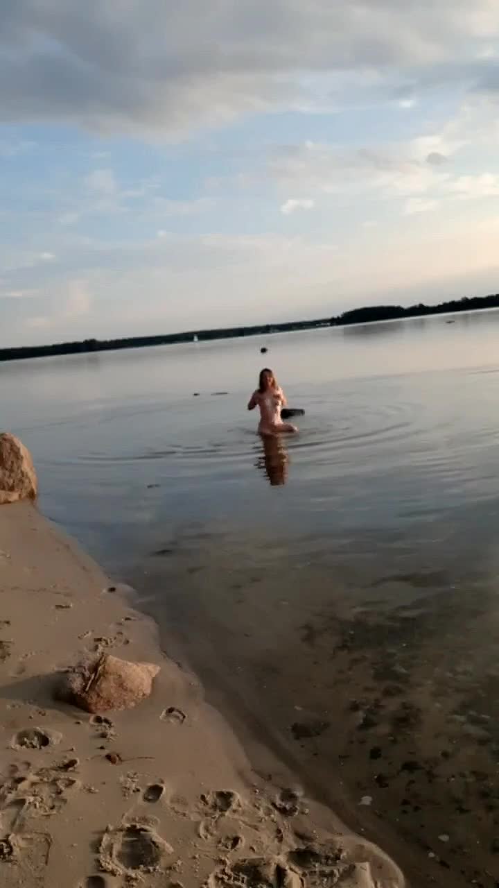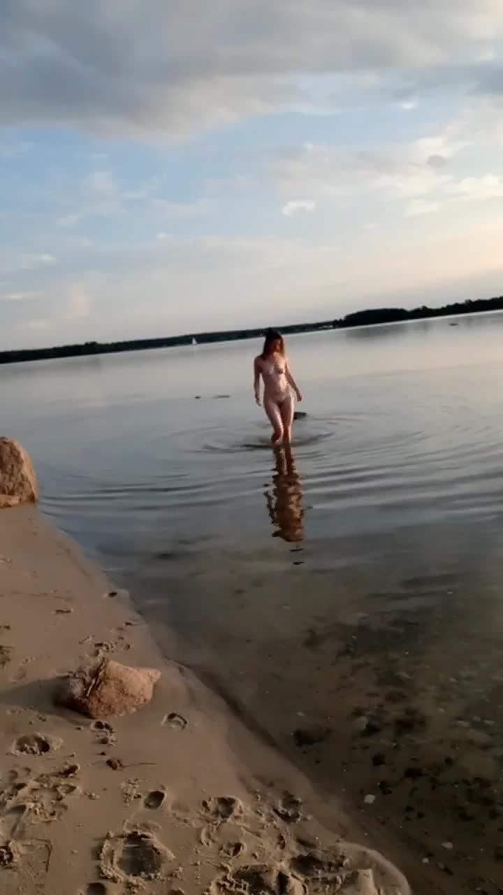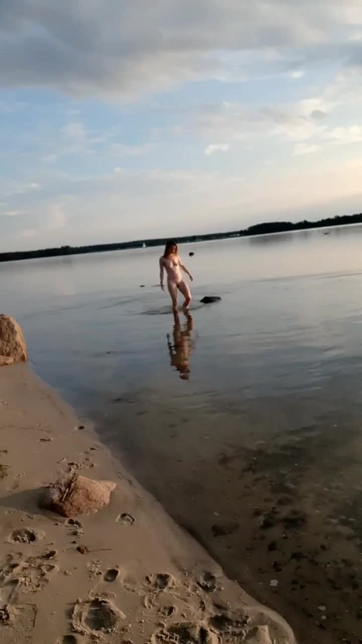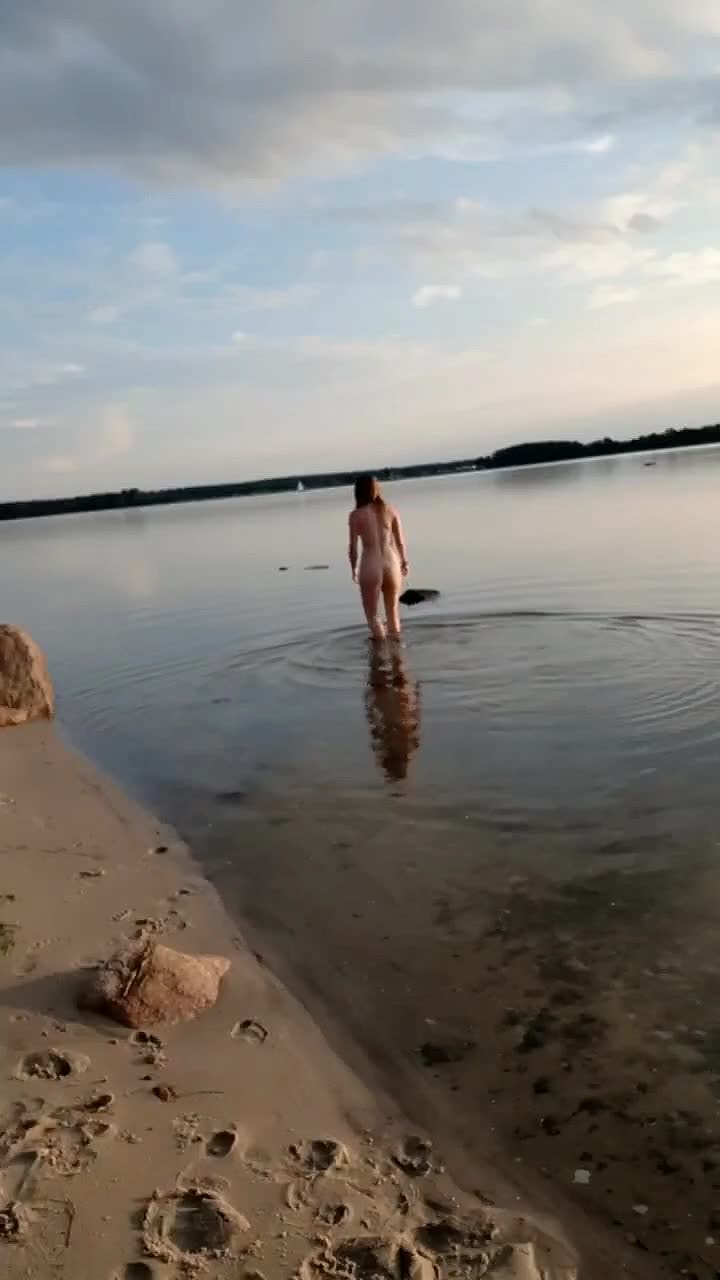 Девка вышла прогуляться по берегу реки, поставила камеру ,разделась и показала себя в лучах закатного солнца;)