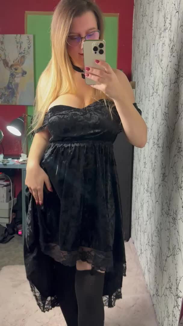 Эта длинная чёрная юбка ей показывать прелести во всей красе мешает, падает постоянно !..