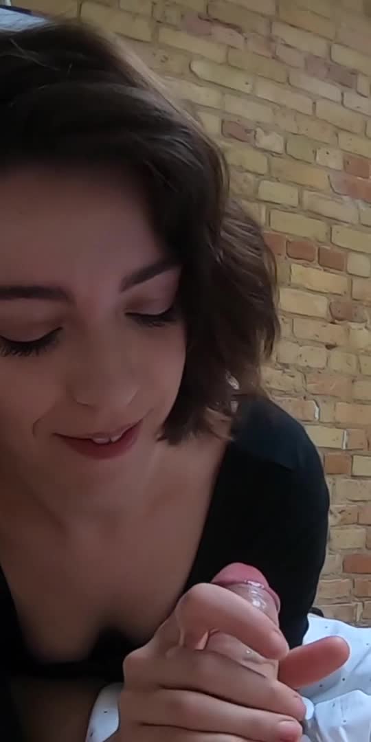 Очень обаятельная девочка делает минет заставляя парня кончить.
