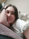 Грудка небольшая,но красивая. С котом на плече,мило. А на фоне обоев цветов. Просто свежа,молода.