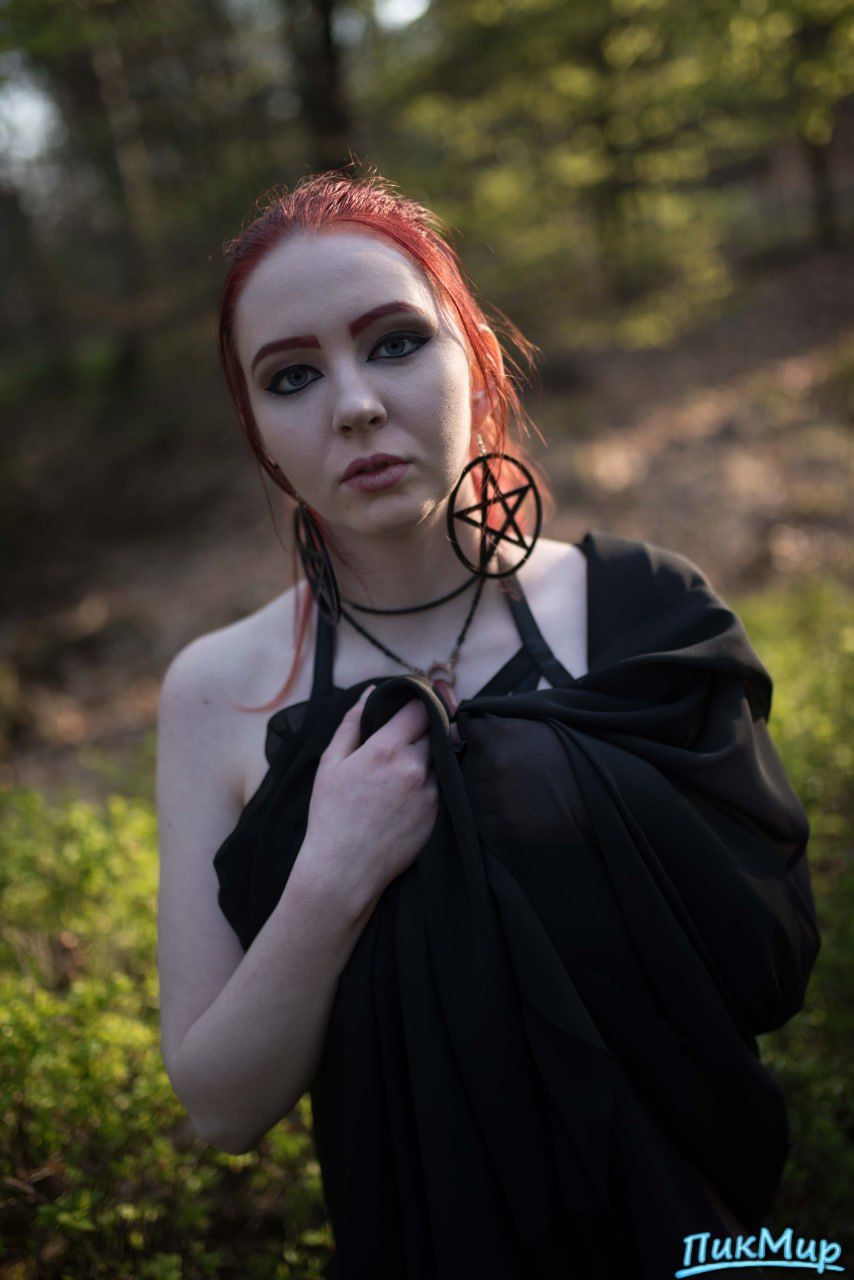 Как чёрными прозрачными крыльями в лесу машет. Прикид, конечно, красивый. И чуть драные чулки тоже в тему. И концовка. Как тут не успокоить фотографа