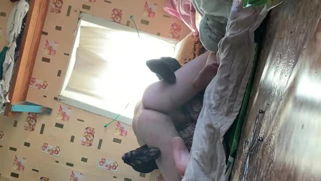 Дачный домик или бытовка. Мужик медленно вставляет женщине в сетчатом боди, а вот трахает сразу очень активно
