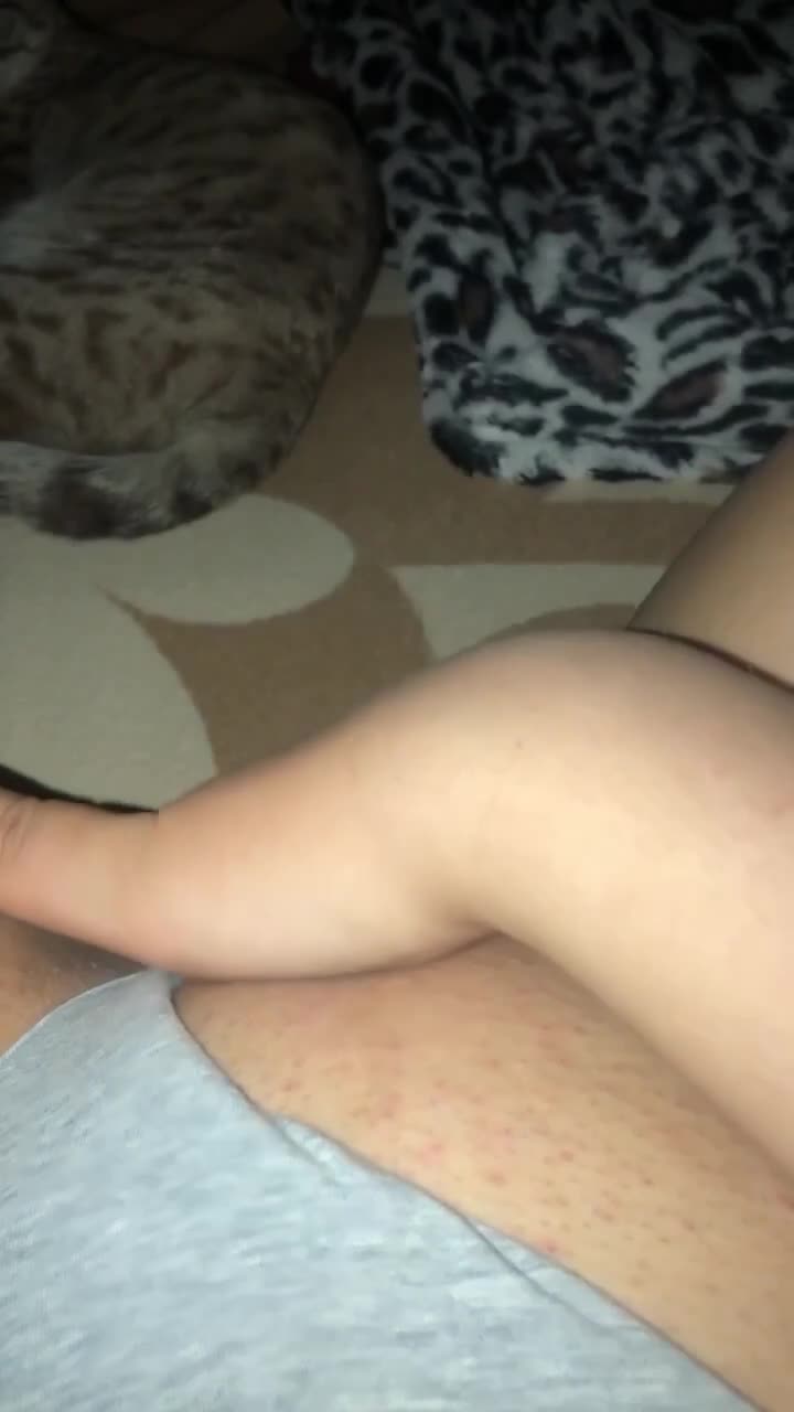 Девушка ночью решила потрогать себя не стесняясь своей кошки, которая за всем этим делом наблюдала.