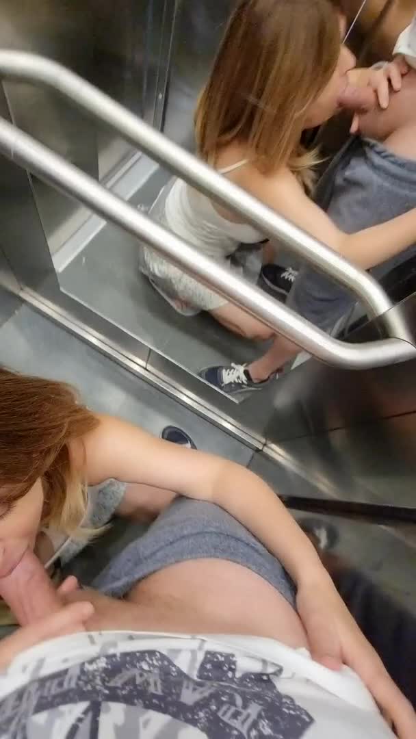 Сделала минет, пока лифт поднимался на нужный этаж.