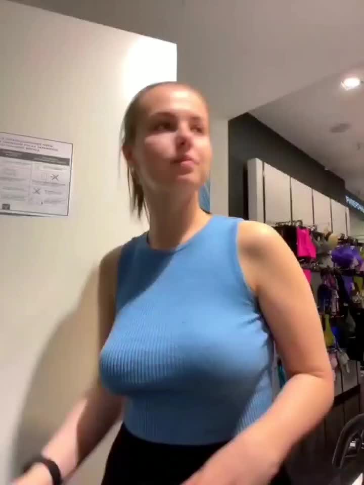 Деваха продавщица зашла в подсобку и показала свои прекрасные сиськи!