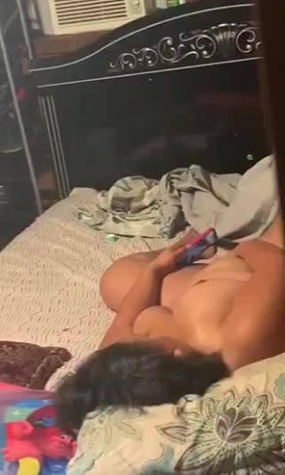 Папарацци подсматривает в окно за пухляшкой, как она снимает на телефон свои игры с писюхой.