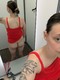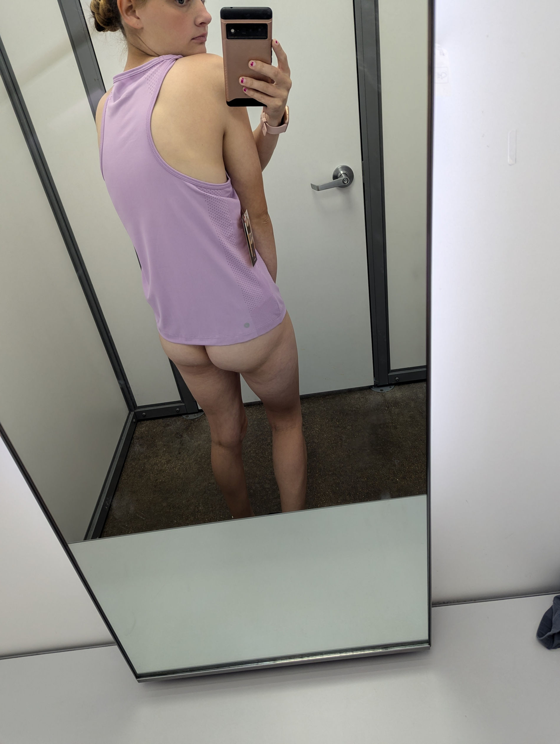 Маленькое чёрное платье ей идёт. А вот сиреневая майка нет. А грудь по классике Правая чуть меньше левой.