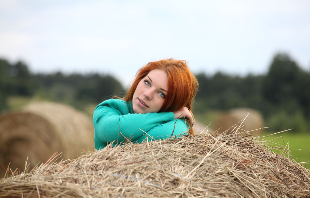 Инга заблудилась в полях, нашла комок сена и поиграла сиськами и писькой на нем