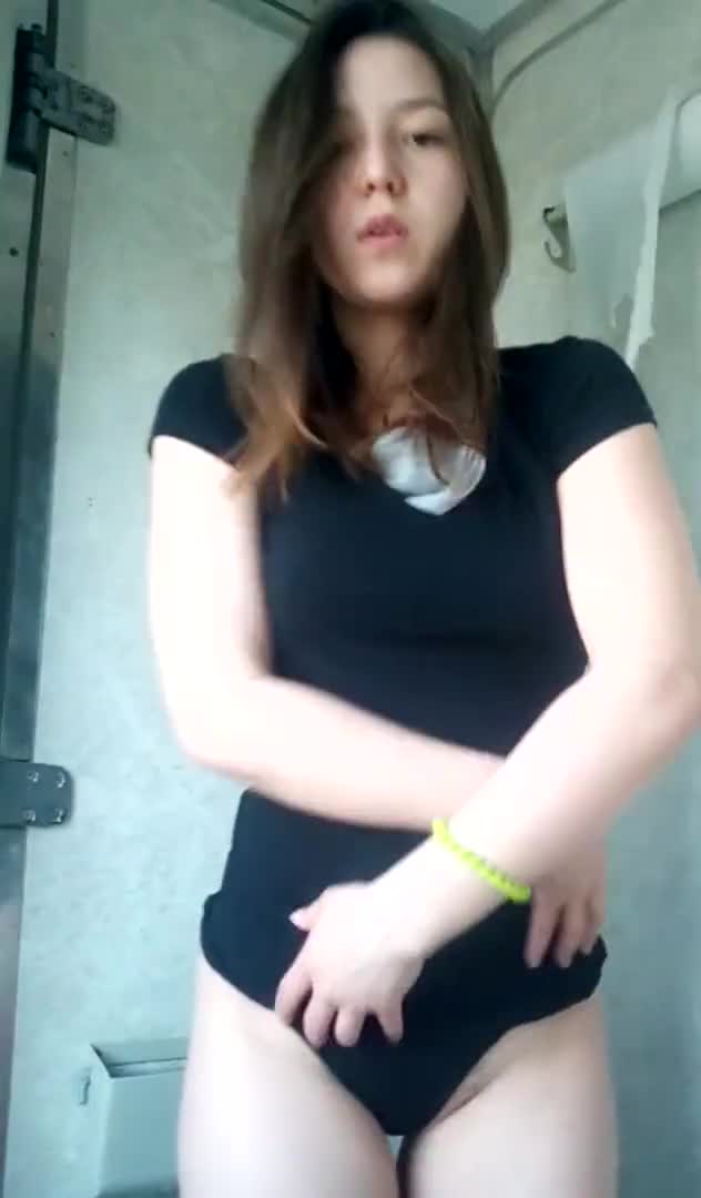 Неплохая девчуля шалит в маленьком туалете вагона РЖД, и как водиться обязательно в него кто-то ломиться