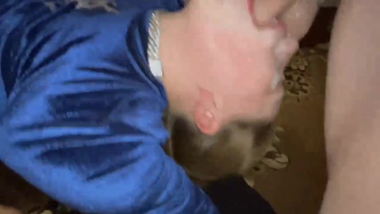 Парень оттрахал свою деваху в рот запрокинув ей голову.