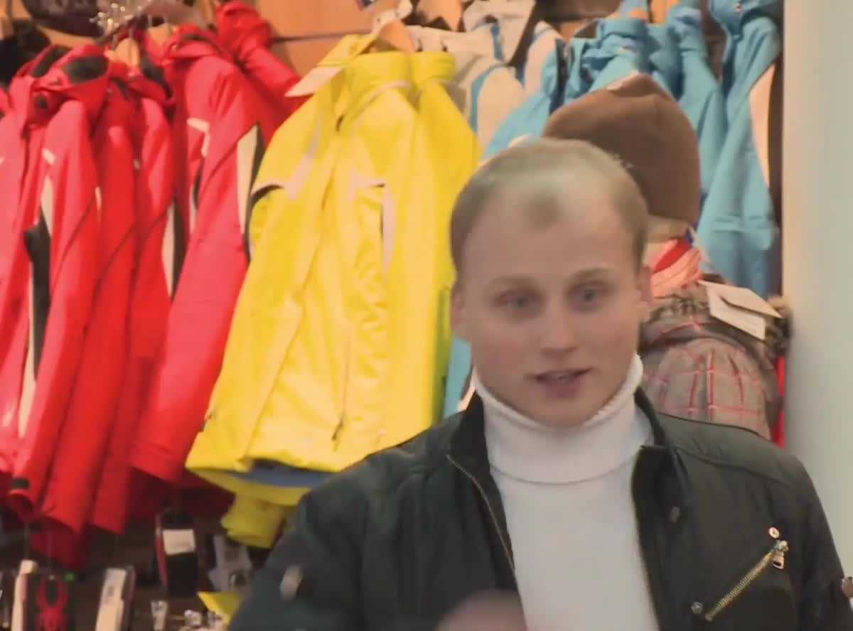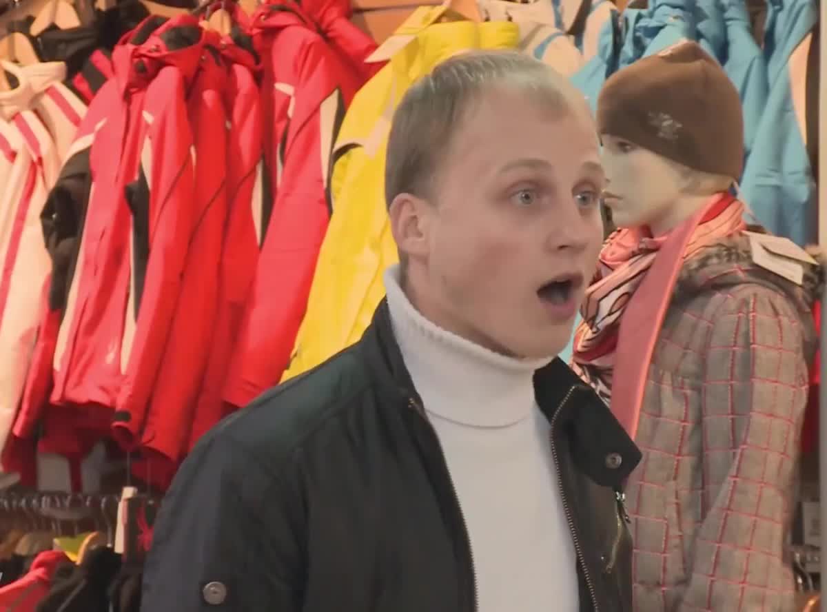 серия «голый и смешные», в которой Алина предстает перед покупателями обнаженной и катающейся на лыжах.
