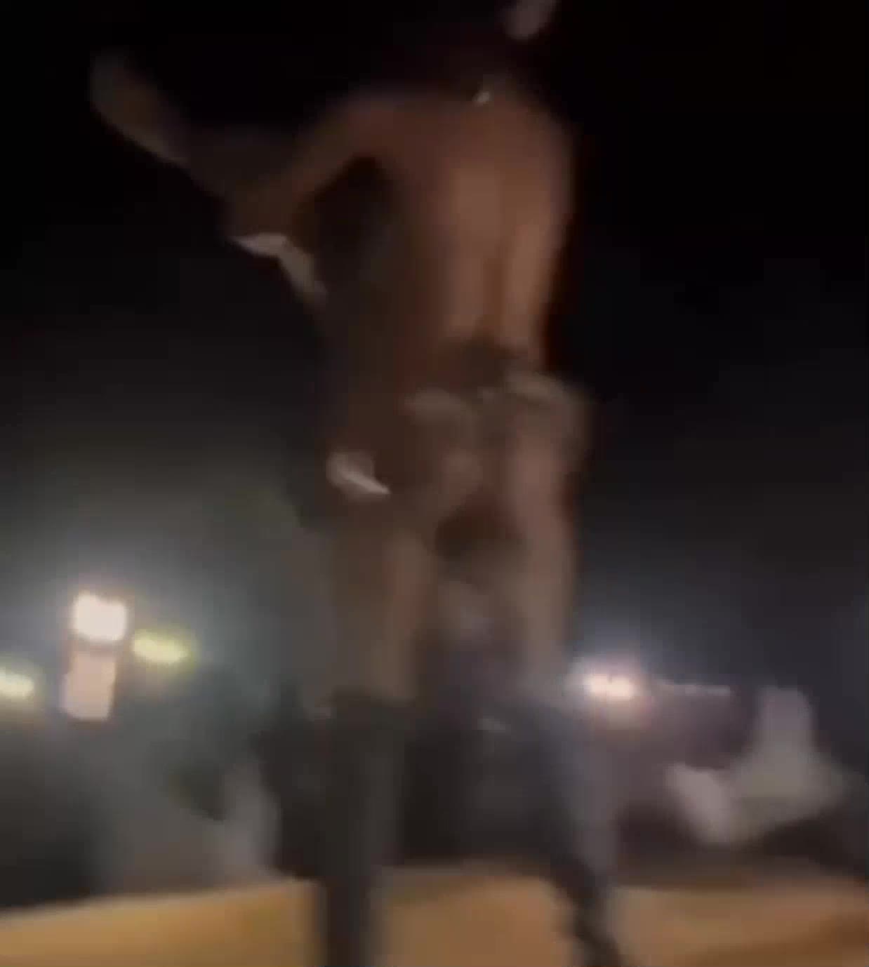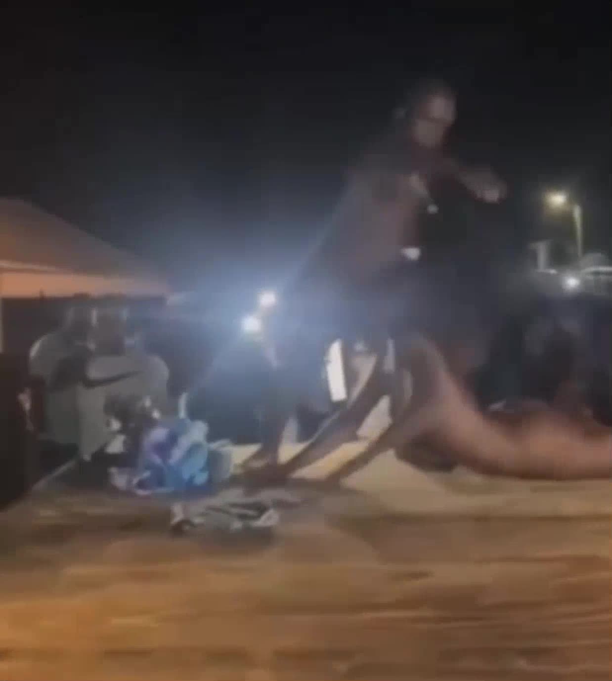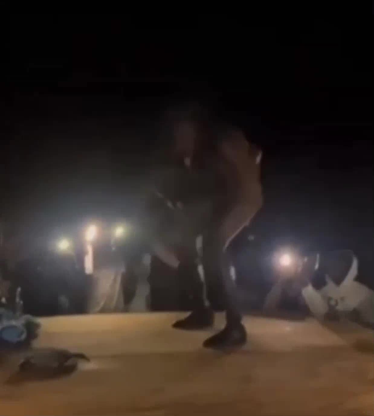 Девушка пританцовывая старается не вынимать изо рта большой чёрный член мелкого негра.
