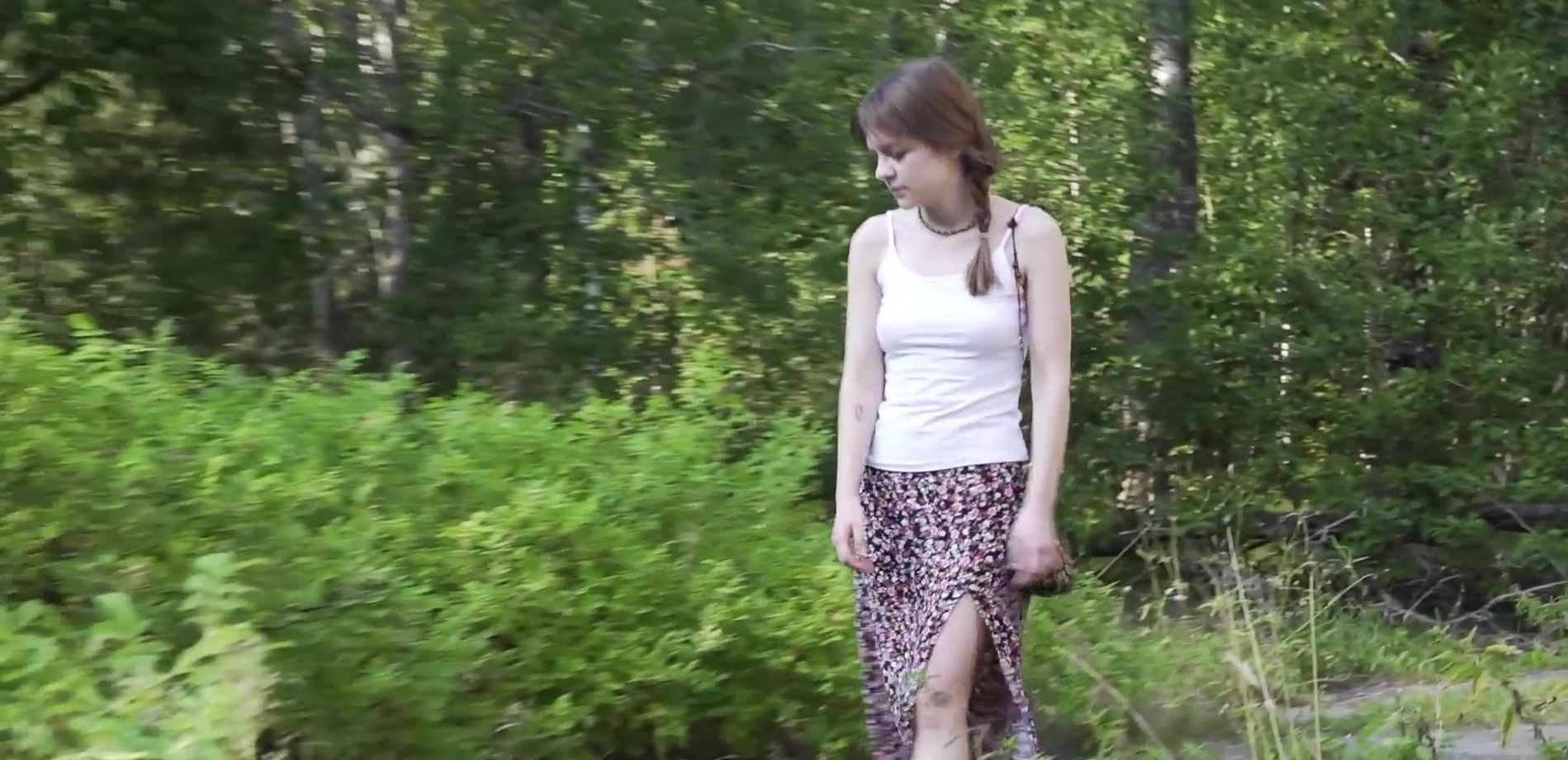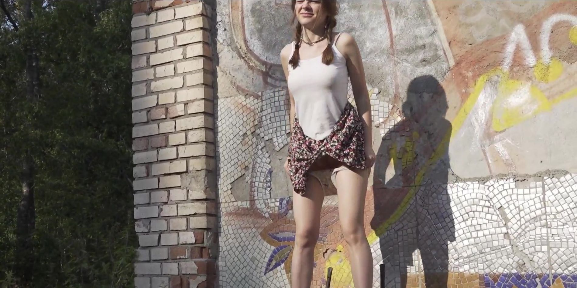 Скромная и худенькая скромняжка, почти что девочка, в тайне от всех делает струйку, показывая на камеру крупным планом свой влажный пирожок. Зачем-то залезла на сломанный стул, но... Нет большей красоты, чем пописать с высоты! ))) Прикольное видео. Приятного всем просмотра!