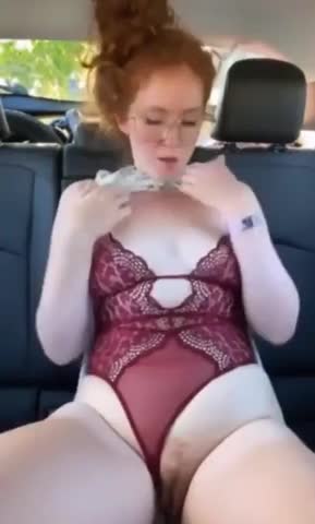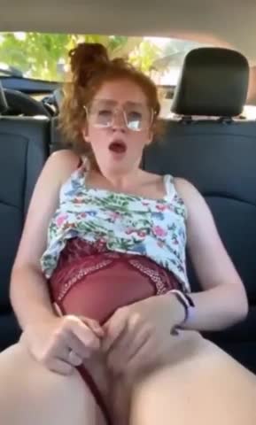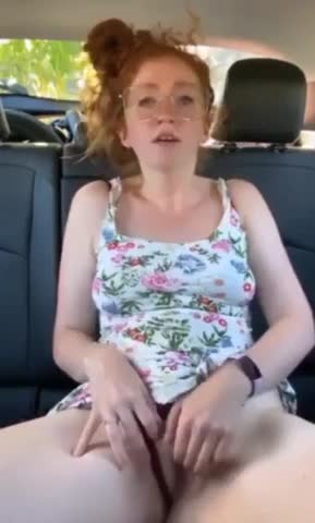Красивая возбужденная рыжая девушка жестко мастурбирует в машине