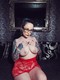 Роскошная брюнетка в красном , но уже с бритой пилоткой , ещё более желанна и сексуальна