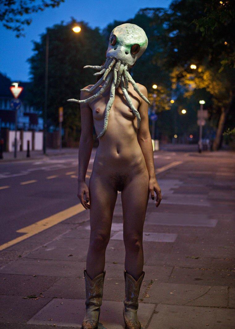 Страшные маски на голове а тело обнажено
