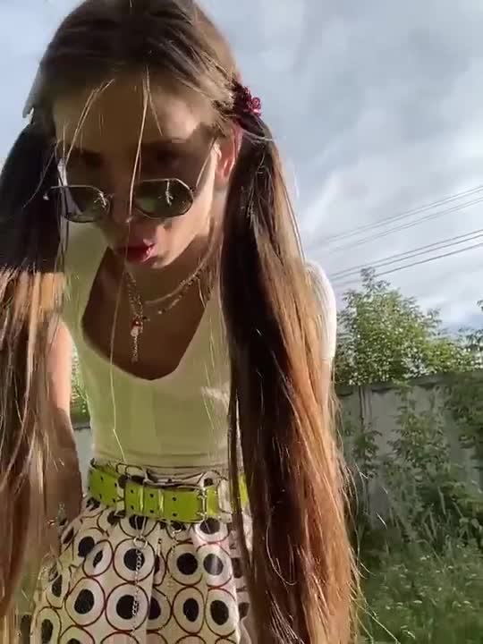 худенькая девушка без трусов гуляет по улице, мастурбируя и трахая свою киску в прямом эфире