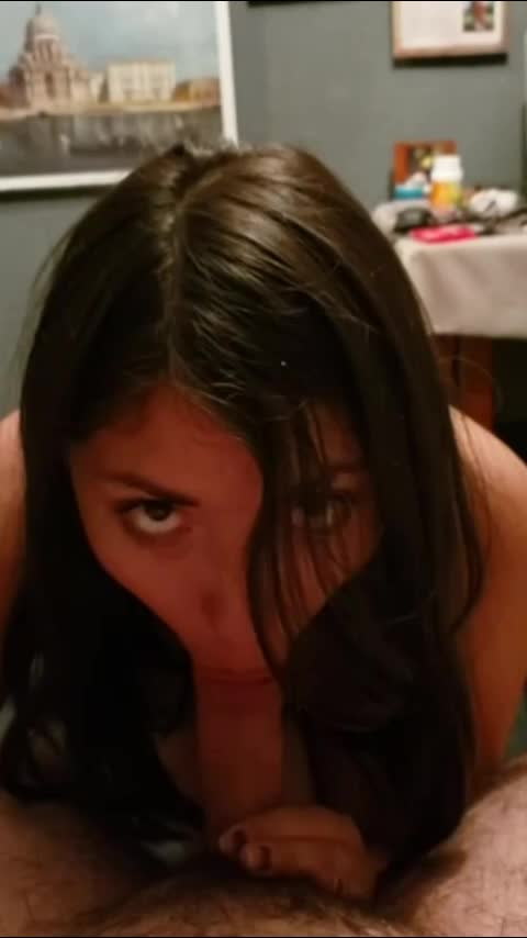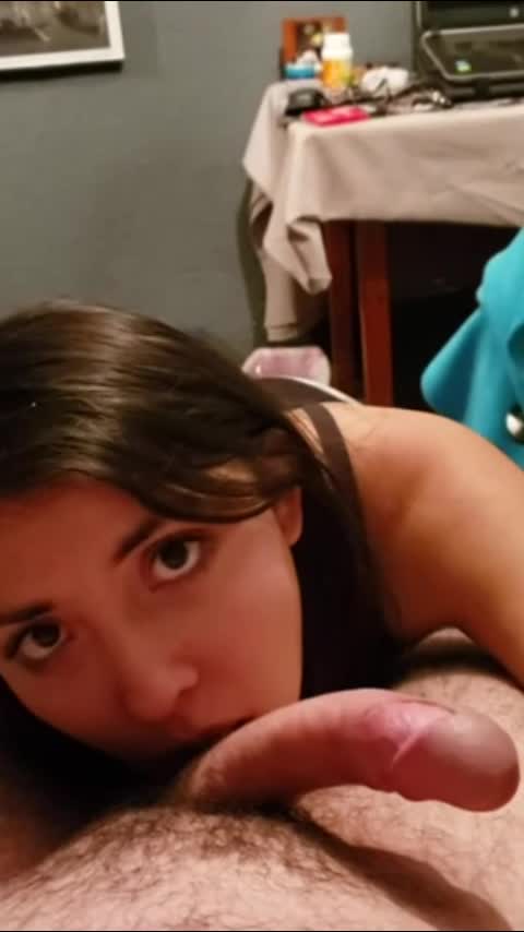 Сосёт хуй и смотрит в глаза