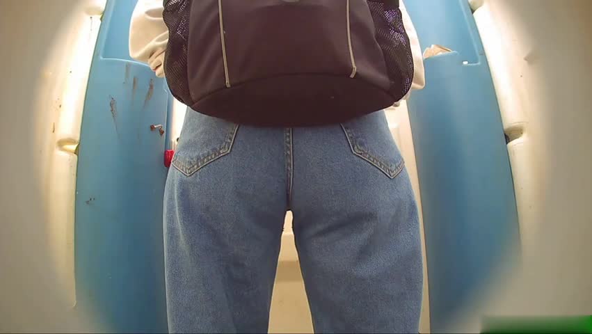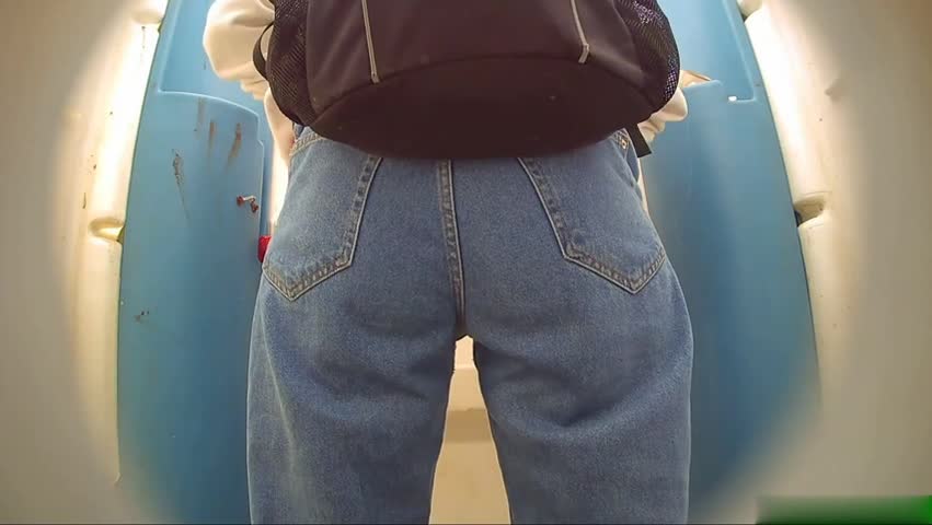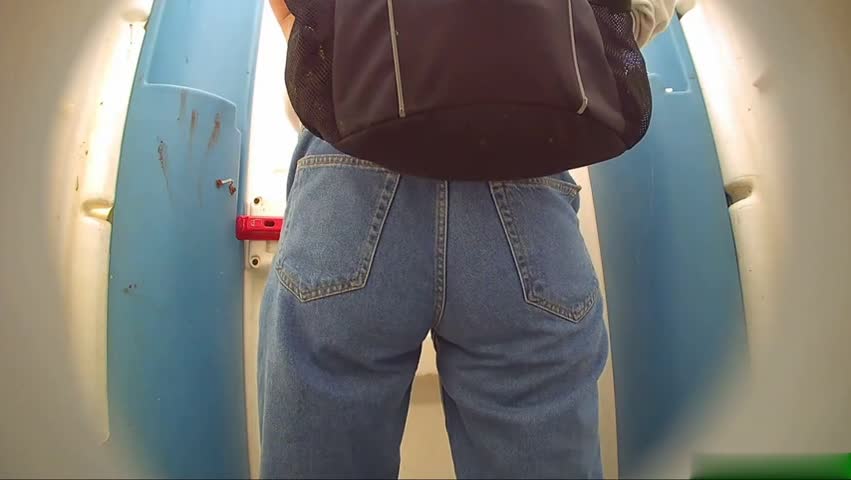 Девушка в джинсах зашла в туалет,заголила свой классный зад засветила свои тату на ляжках и поссала.