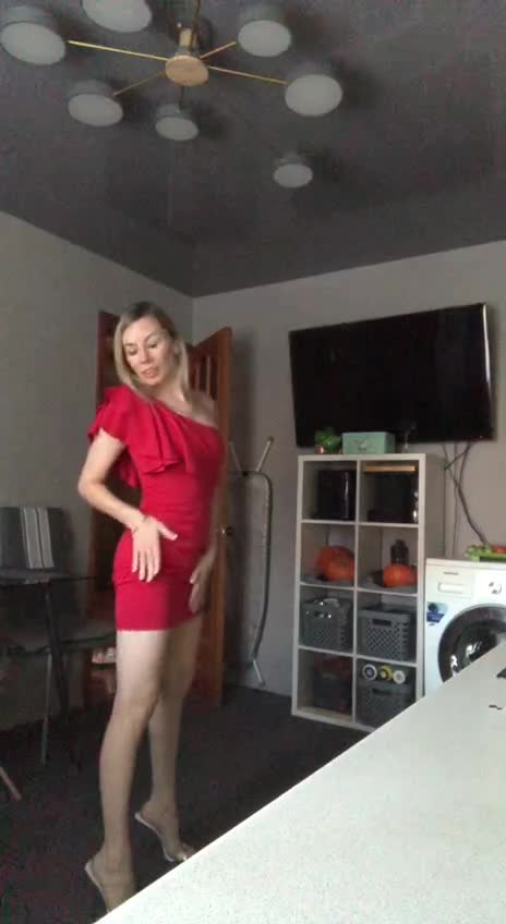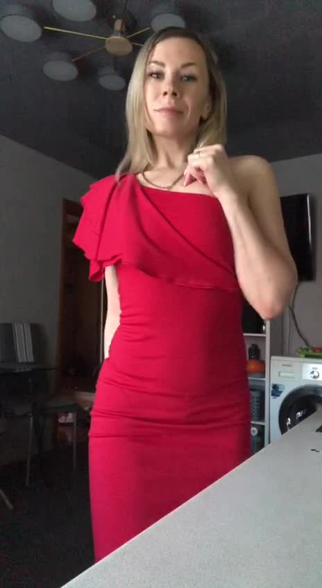 Под красным платьем у этой очаровательной блондинки тело просто бомба.