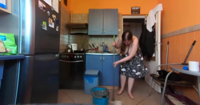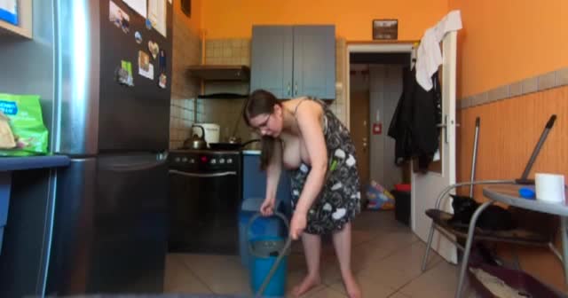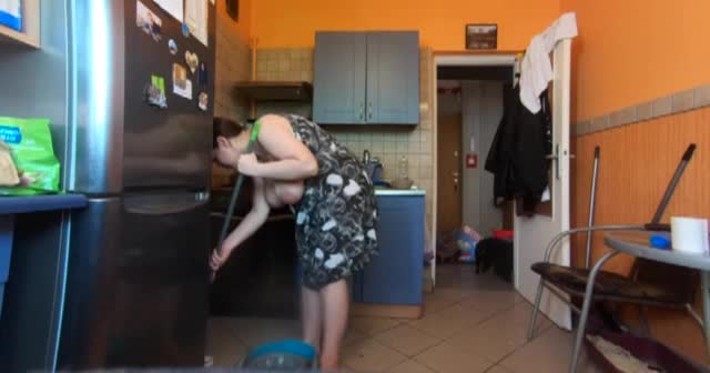 Очень приятно смотреть на женскую красоту в процессе уборки.