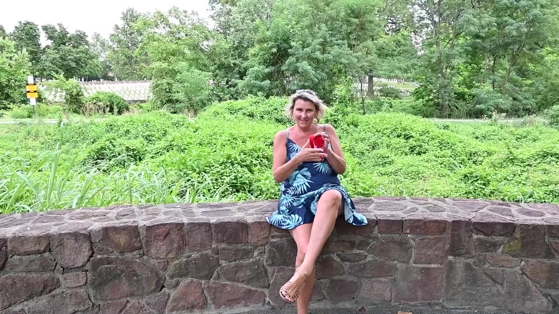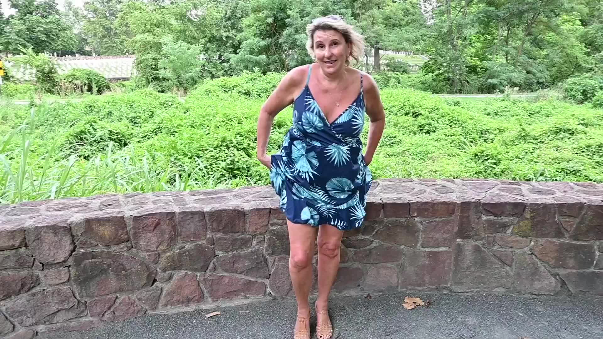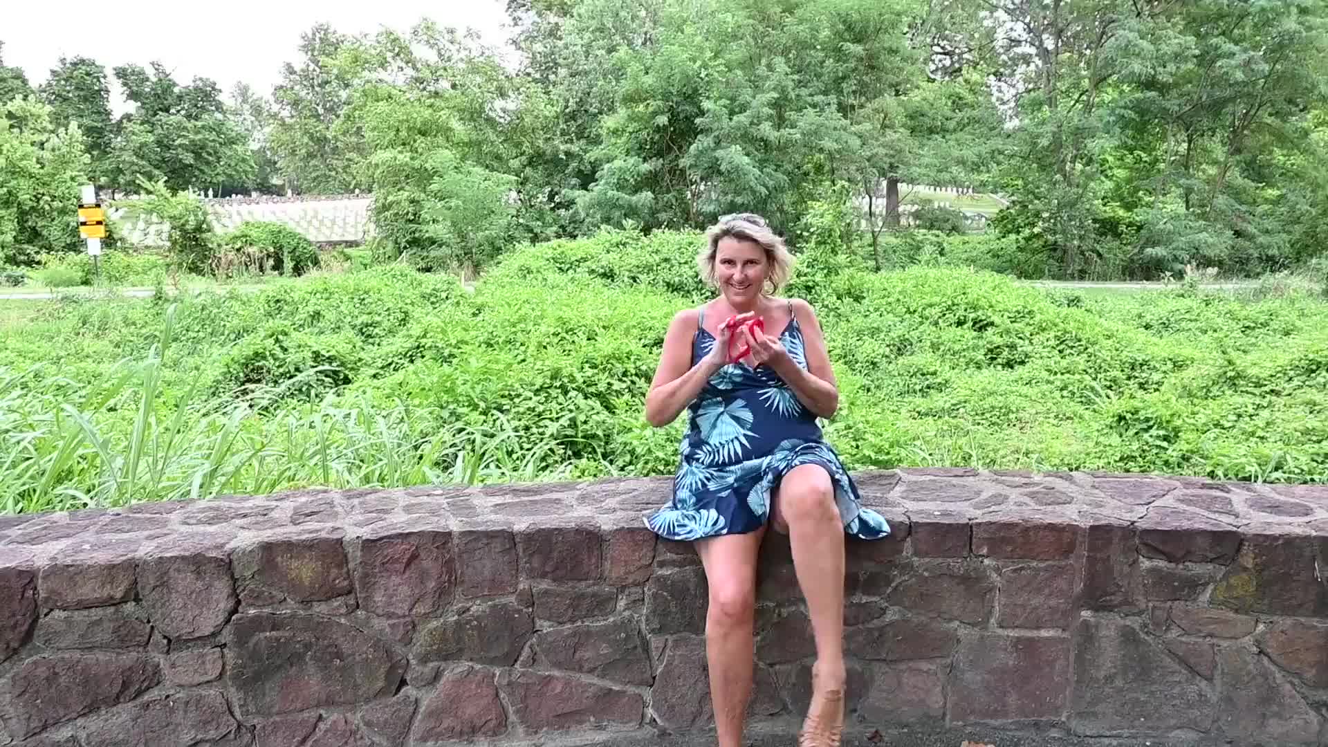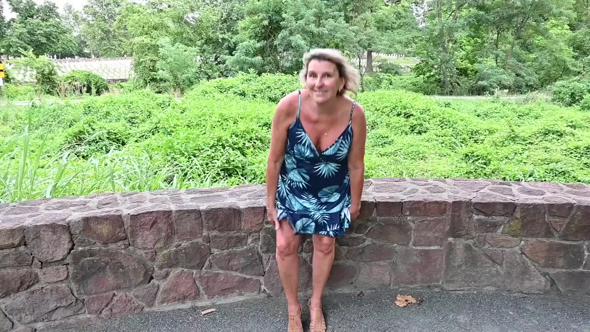 Зрелая блондинка сняла трусики на прогулке и продемонстрировала свою интересную киску