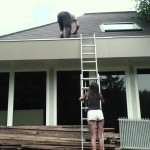 Молодая обнаженная девушка стоя на четвереньках подставила рот для члена старика