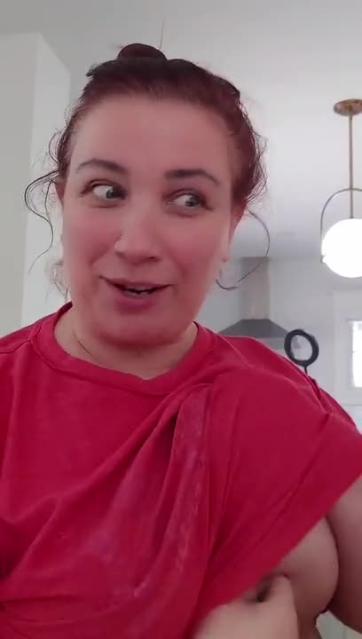 Забугорная мамка показала сиськи. Просто задрала футболку и показала.